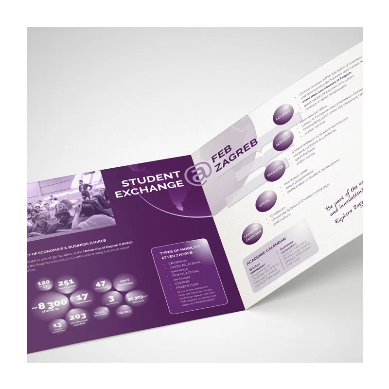 Za Ekonomski fakultet Zagreb radili smo više brošura i letaka te projekata koji su znali izlaziti iz domena grafičkog dizajna.