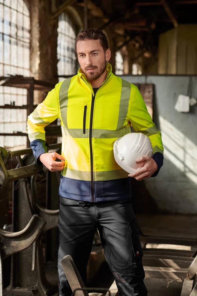 Reflektirajuća softshell jakna visoke vidljivosti, uniseks kroja, prozračna je i vodootporna. Ima troslojnu membranu i reflektirajuće trake, sve prema dizajnu koji je izrađen u skladu s europskim standardima – EN ISO 20 471 i EN ISO 13 688.
