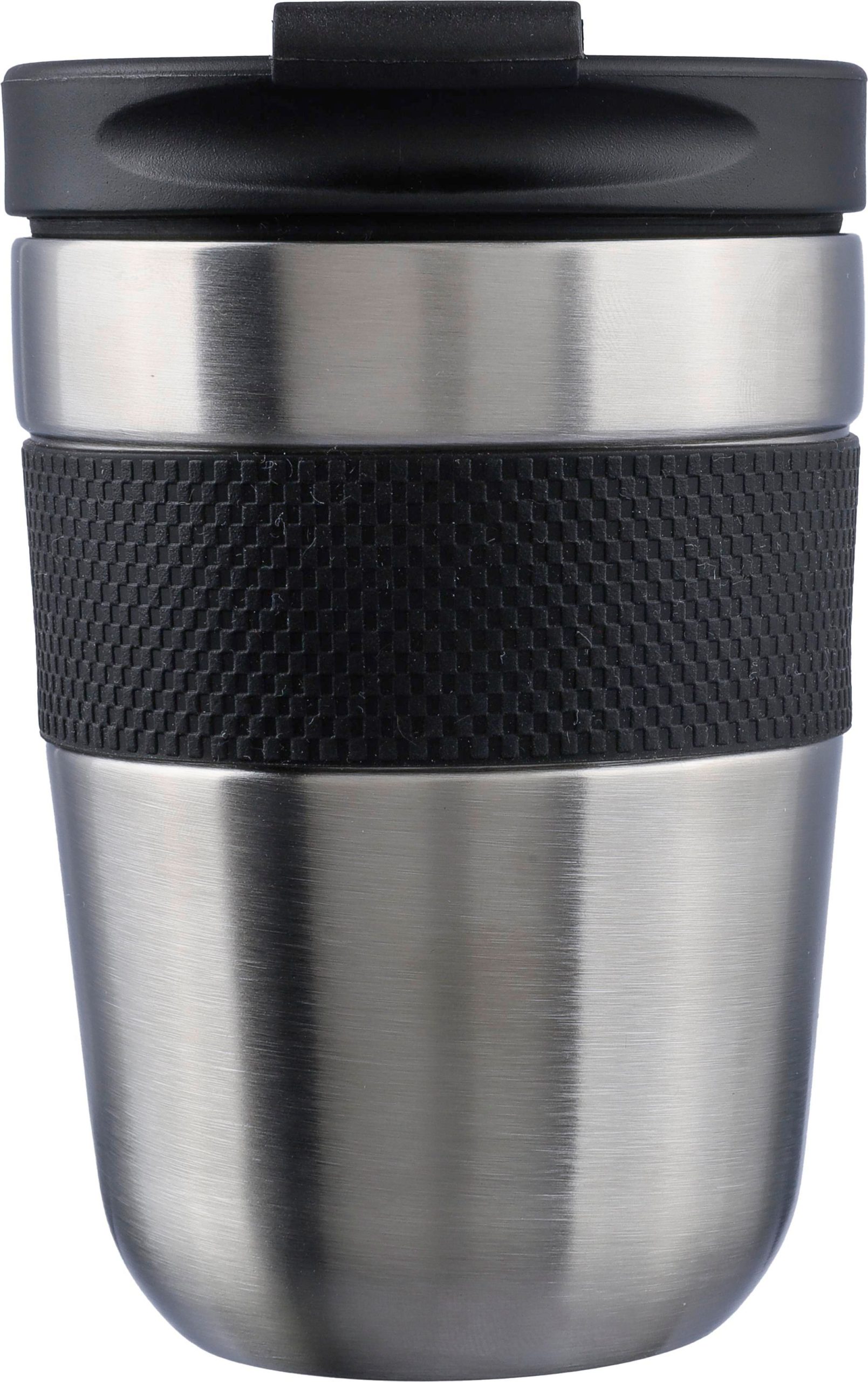 Dvostruka stijenka šalice od nehrđajućeg čelika (300 ml) s PP poklopcem i silikonskim rukohvatom. Održava sadržaj toplim 4 sata i hladnim 6 sati. Unutrašnjost je izrađena od nehrđajućeg čelika 304, a vanjština od nehrđajućeg čelika 201. Pojedinačno pakirano u smeđu kartonsku kutiju.