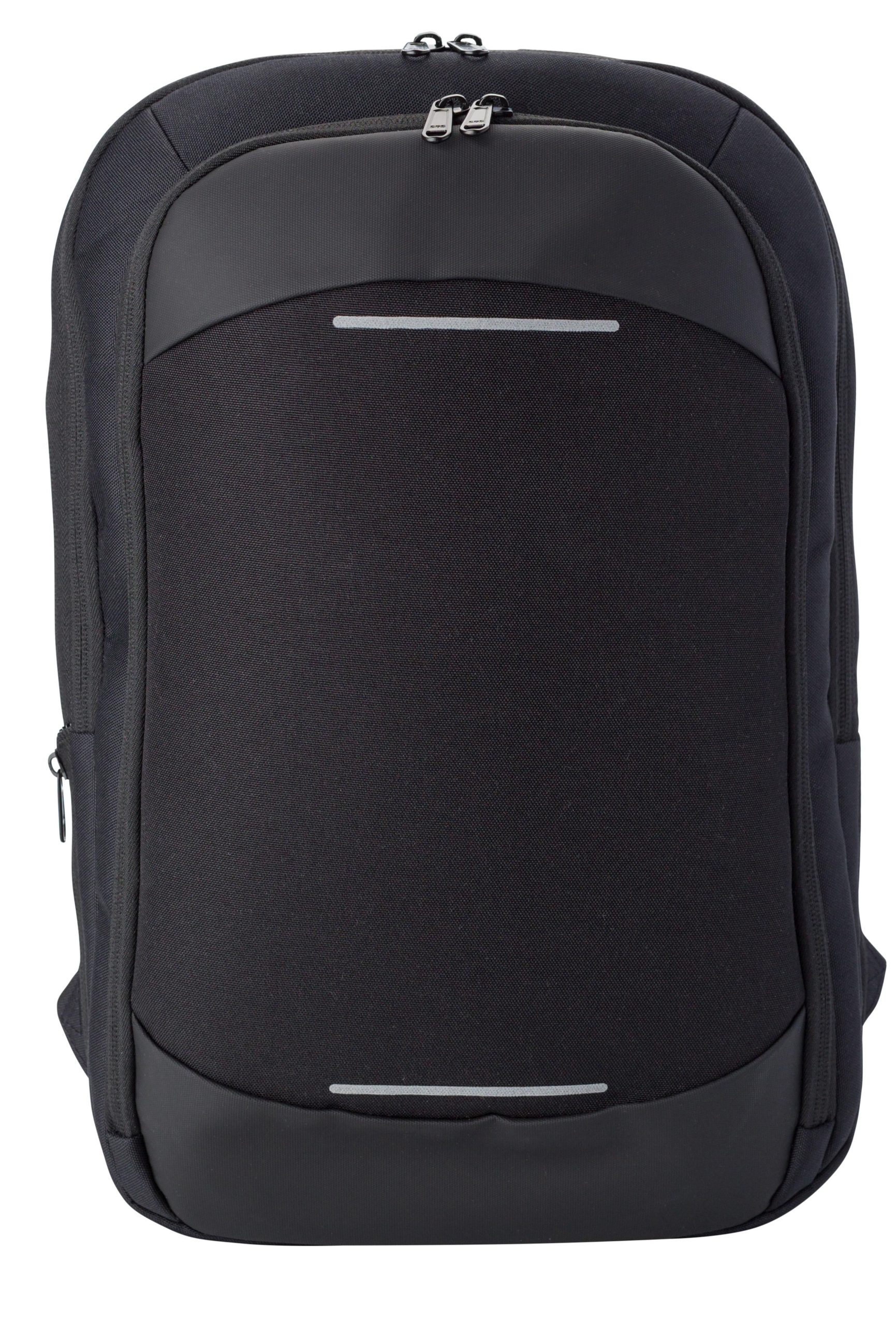 Ruksak od poliestera (600D) s prednjim džepom na patentni zatvarač i podesivim podstavljenim naramenicama. S tajnim džepom na stražnjoj strani i reflektirajućim prugama sprijeda.