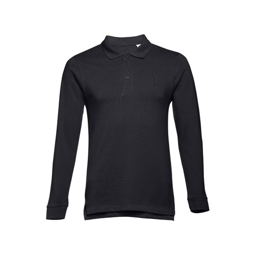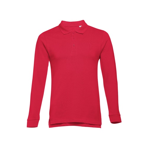 Muška polo majica dugih rukava od 100% piqué mesh pamuka (195 g/m²) (boja 183: 85% pamuk/15% viskoza). Majica ima regular fit kroj, a ranfle na rukavima i kragna su od rebrastog materijala. Ovratnik je ojačan piqué trakom. Na prednjoj strani, pored kragne, nalaze se tri gumba u boji majice (dodatni gumb umetnut u unutrašnji šav). Majica je rezana i šivena i ima bočne otvore na dnu. Ima vidljivu etiketu koja se može ukloniti. Veličine: S, M, L, XL, XXL