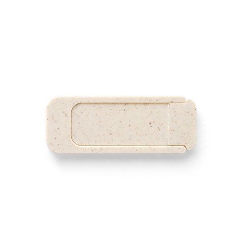 Zaštita za web kameru od vlakna pšenične slame i PP-a sa kliznim poklopcem i naljepnicom na stražnjoj strani. Veličina je univerzalna i prikladna za pametni telefon, tablet i prijenosno računalo. 42 x 17 mm | Otvoreno: 65 x 17 mm