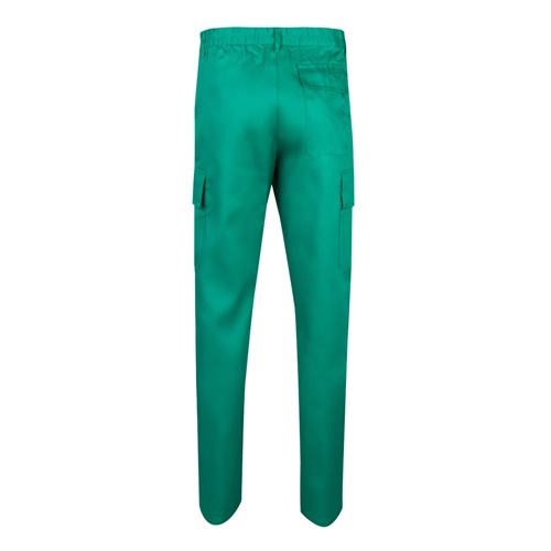 Hlače od kepera s više džepova (190g/m²), od pamuka (20%) i poliestera (80%). S elastičnim pojasom i pet džepova (2 francuska džepa, 2 bočna džepa s umetcima i 2 stražnja džepa s umetcima)