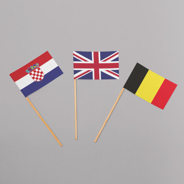 Stolne zastavice sastoje se od metalnog ili plastičnog stalka te zastavice (platnene ili satenske). Zastavice mogu biti raznih dimenzija, otisnute tehnikom sitotiska ili solventnog tiska (zavisno od vaše pripreme) s ukrasnim obrubom s resicama ili standardnim obrubom.