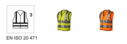 EN ISO 20471:2013 (klasa 3) – ova norma specificira uvjete koje mora ispunjavati odjeća visoke vidljivosti koja vizualno signalizira korisnikovu prisutnost. Odjeća visoke vidljivosti namijenjena je pružanju vidljivosti nositelja u svim svjetlosnim uvjetima, da bi ga vidjeli operatori vozila ili druge mehanizirane opreme tijekom dnevnih svjetlosnih uvjeta, ali i pod osvjetljenjem prednjih svjetala u mraku.